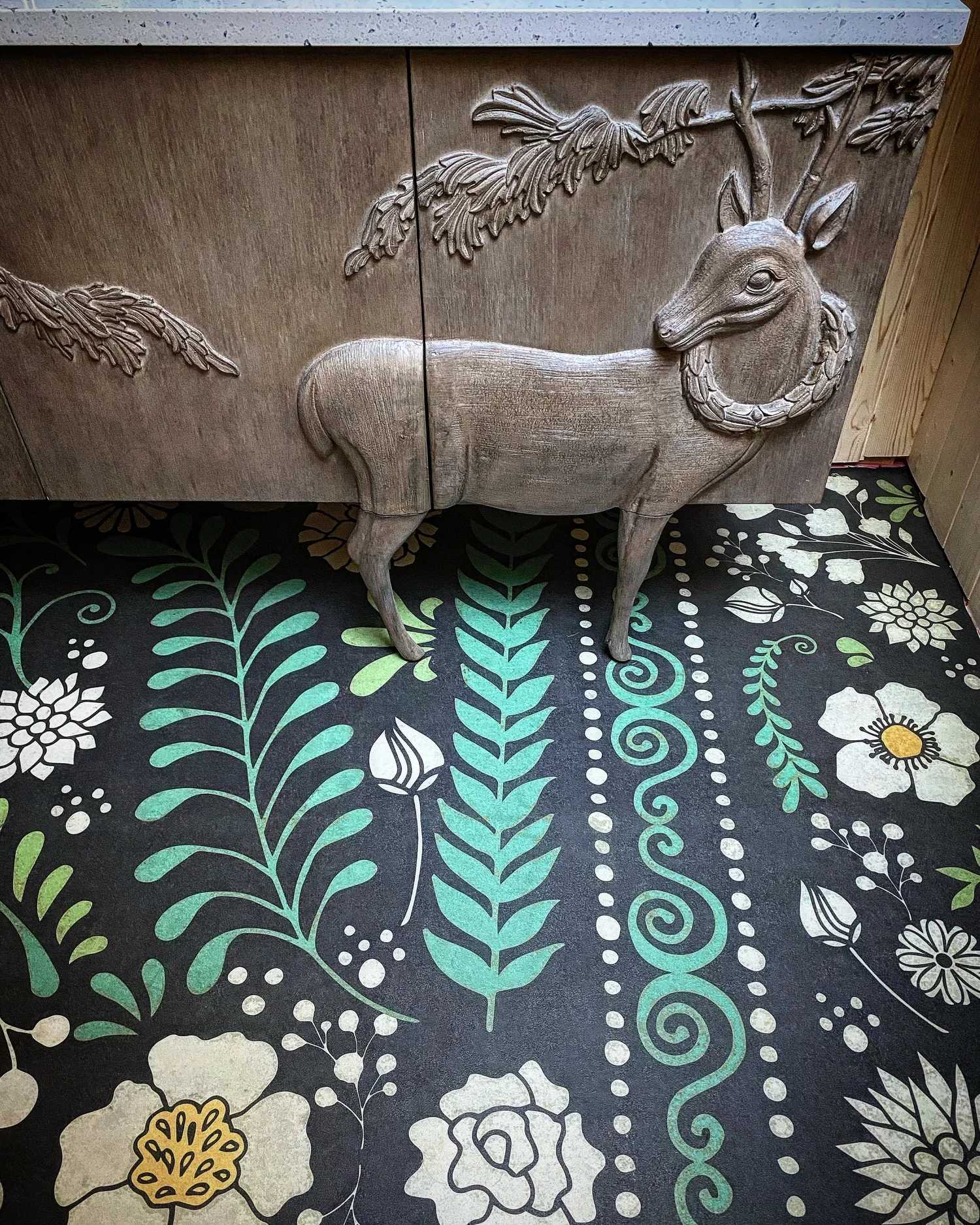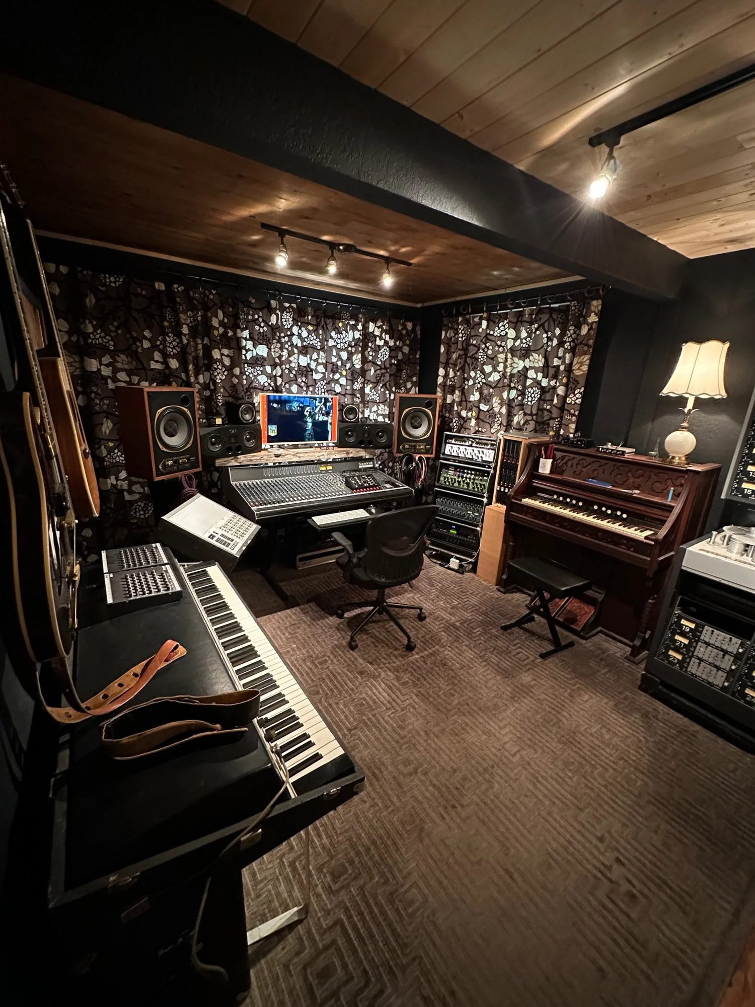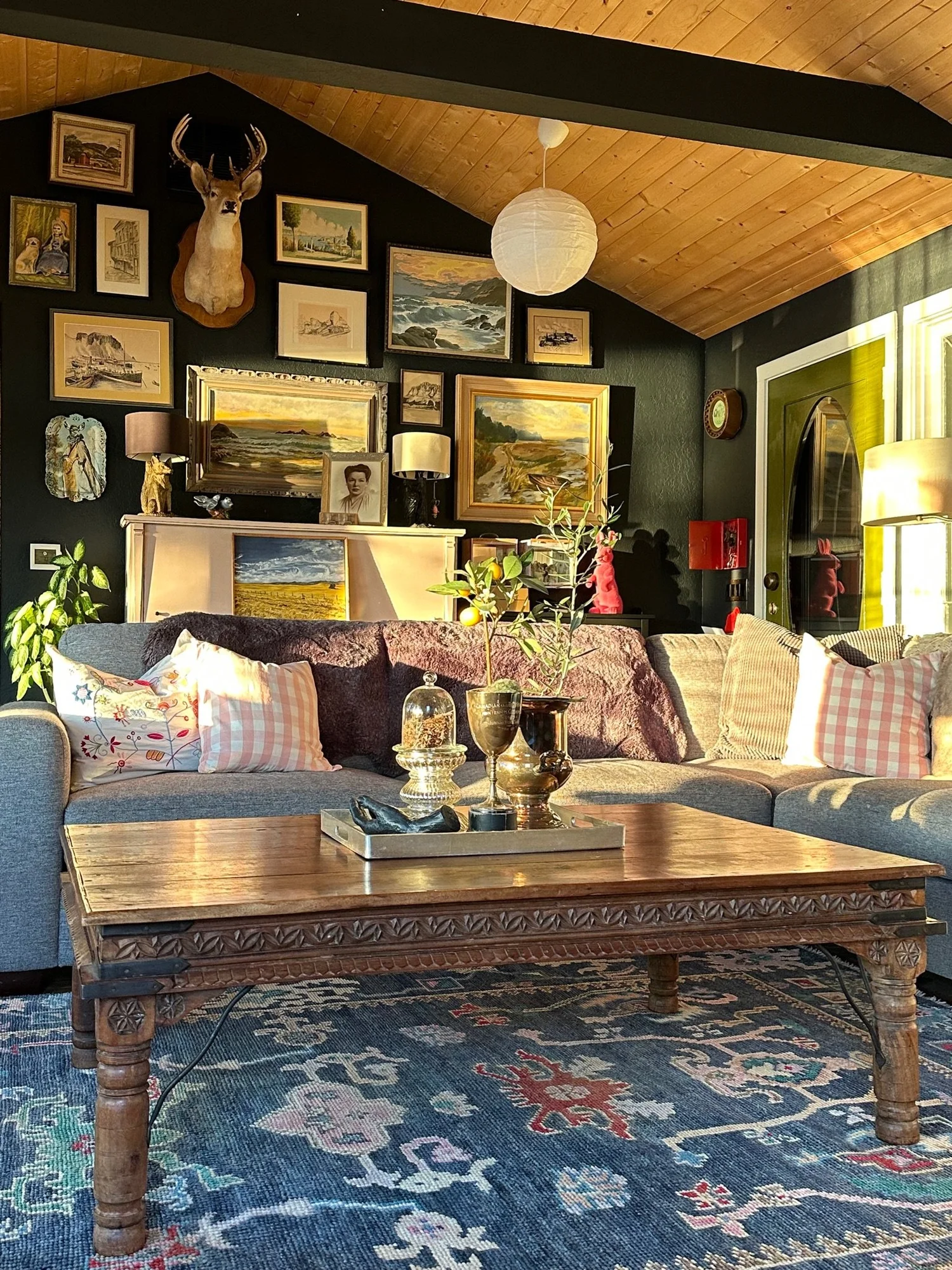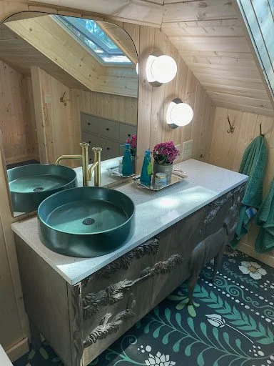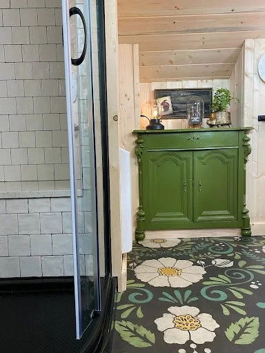 New stewards of a quirky cottage called upon “the spirit of Lucy” to guide them in making it their own. This remodel balances reverence for the cottage’s heritage with a creative, maximallist sensibility. The interplay of deep color, natural pine ceilings, and collected textures establishes a moody yet welcoming tone. The attic’s new primary suite blends rustic materials with contemporary comfort, while the adaptive reuse of salvaged elements in the kitchen reinforces the home’s sustainable, lived-in character. The integration of a recording studio ties the design back to the owners’ artistic lives, creating a space that feels both timeless and deeply expressive—a modern continuation of the home’s long, storied history.